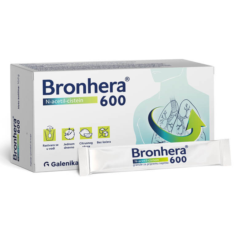Mukolitik koji razgrađuje gustu sluz i olakšava iskašljavanje. Doprinosi antioksidativnoj zaštiti organizma.