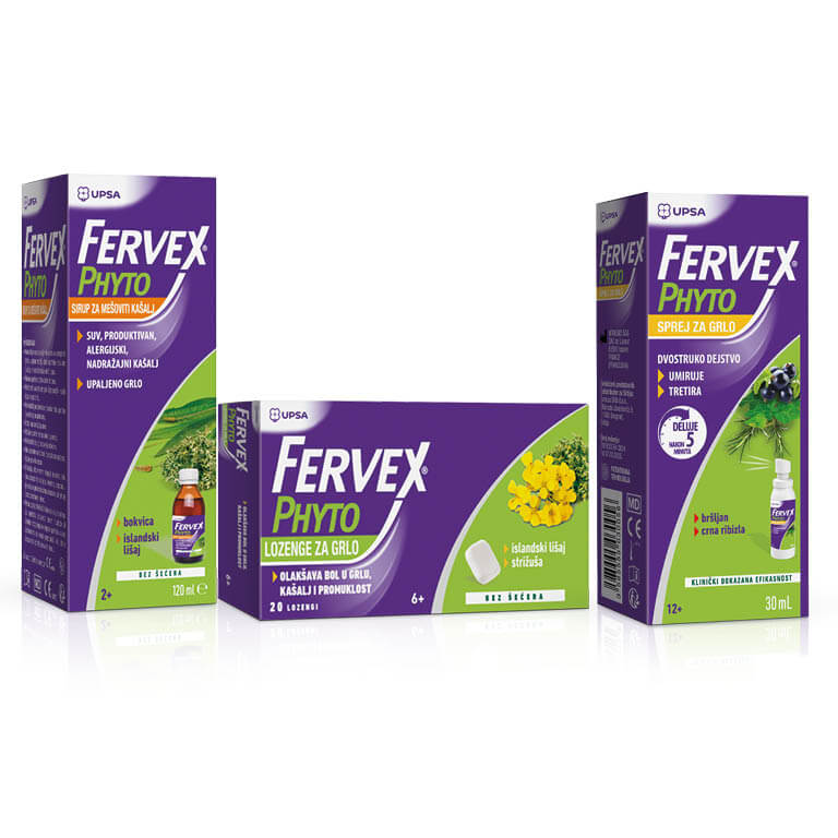 FERVEX PHYTO SIRUP, 120ml FERVEX PHYTO, 20 lozengi FERVEX PHYTOSPREJ ZA GRLO, 30ml